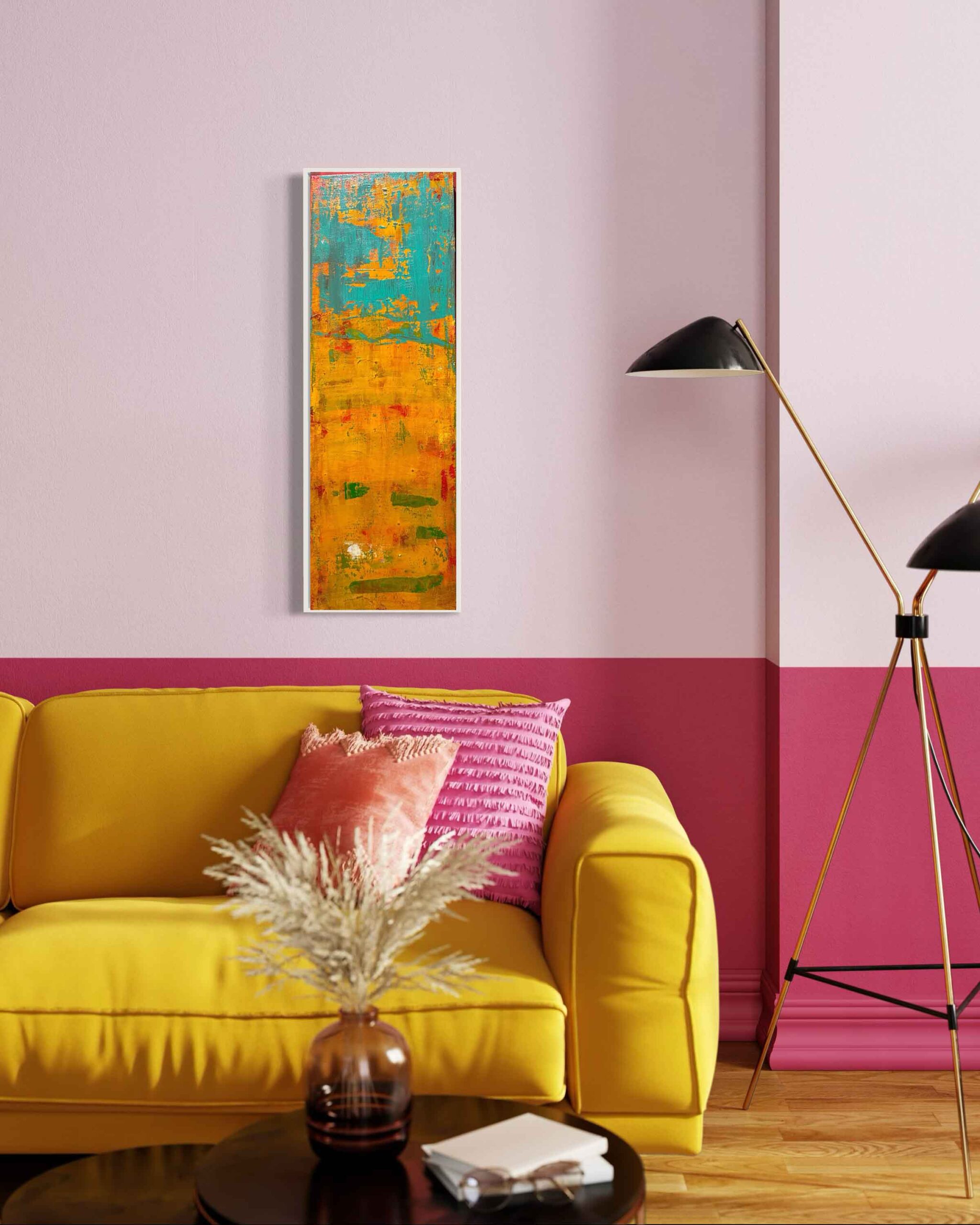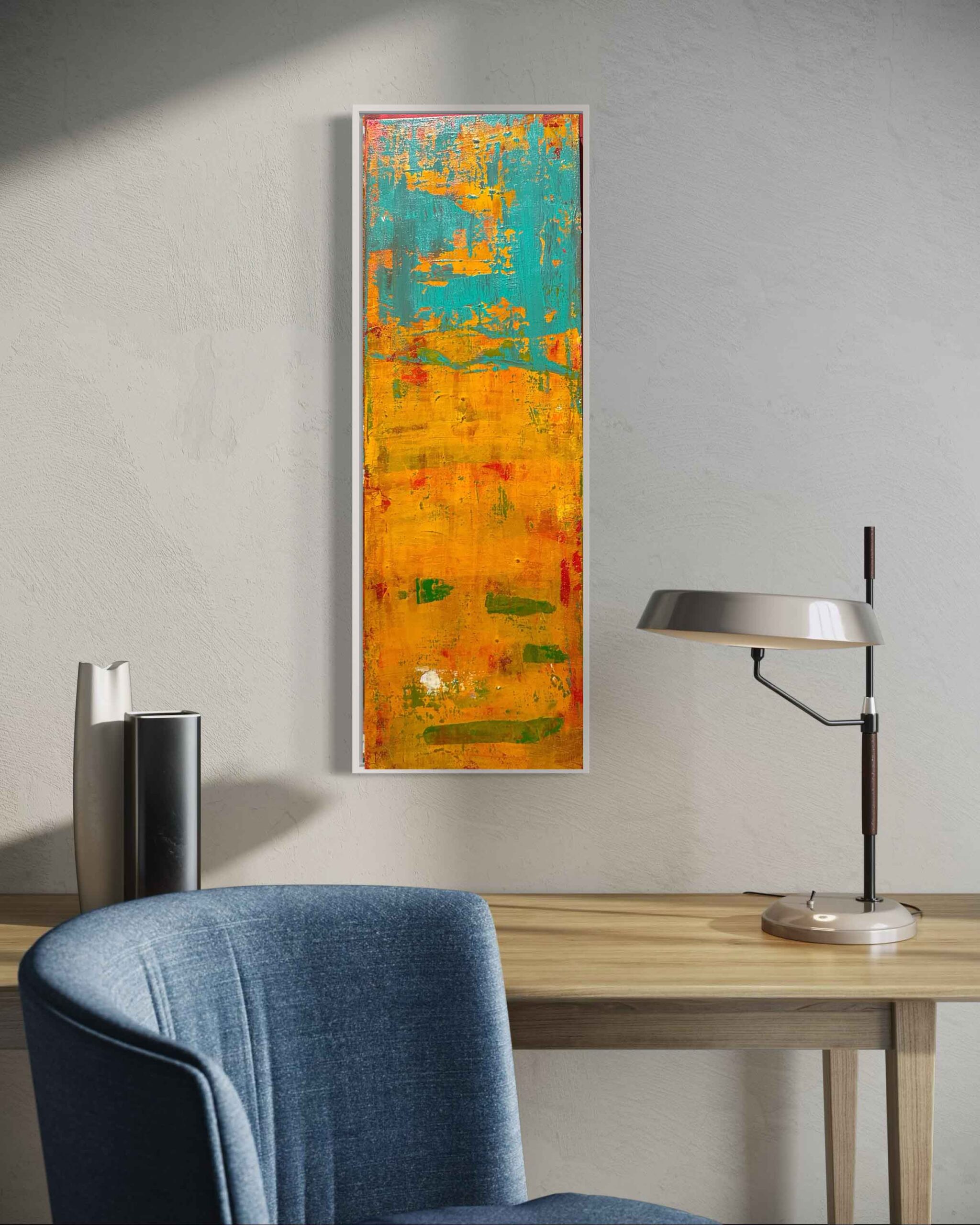 A lively abstract painting inspired by the colors and spirit of Mexico. Bold hues and energetic textures capture the vibrance, warmth, and cultural richness of the land.